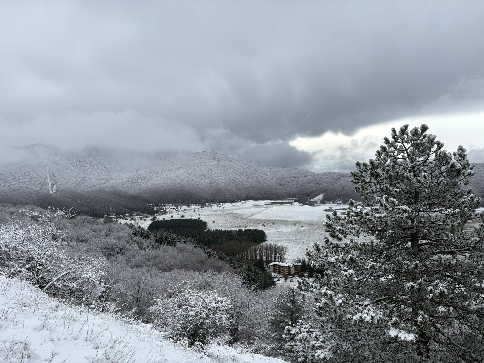 La nevicata, diventata nel corso delle ore più copiosa, ha regalato la prima incantevole cartolina del Laceno; diversi sono i centimetri di neve che si sono posati al suolo.