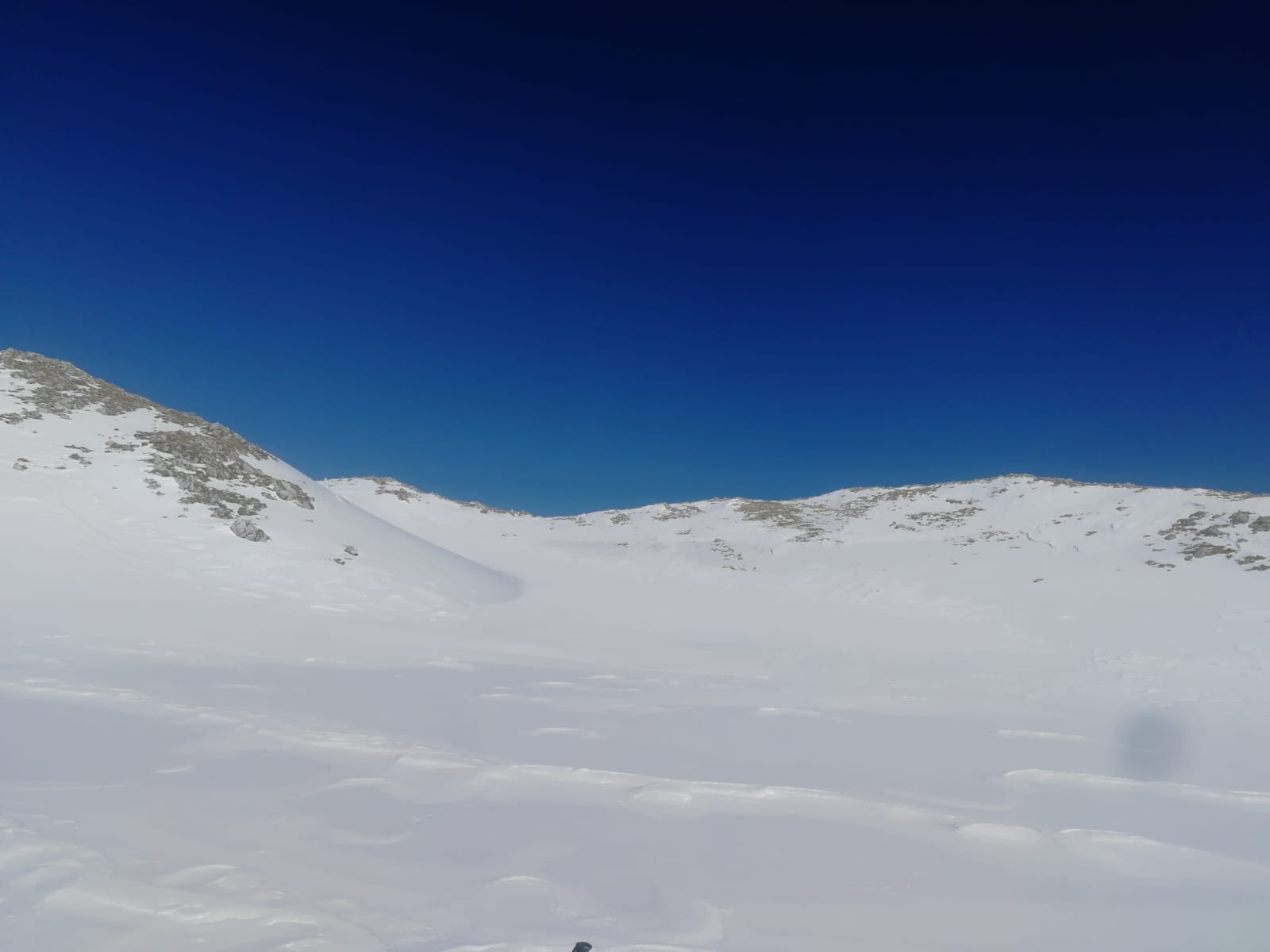 Un’escursione scialpinistica è in tutto simile a un’ escursione estiva, con l’ovvia e fondamentale differenza che la montagna è innevata. Per la salita si utilizzano gli sci, dotati di appositi attacchi mobili, che permettono di alzare il piede, come in una vera camminata. Sotto gli sci si fissano le cosiddette pelli di foca (oggi sintetiche) che permettono agli sci di scivolare in avanti, ma non all’indietro. La salita si svolge spesso seguendo l’itinerario estivo, con le necessarie “varianti” dettate dal terreno innevato. Sui tratti più ripidi e sulle creste, sarà necessario procedere a piedi, usando nel caso la tipica attrezzatura alpinistica: ramponi, piccozza e corda. La discesa, si svolgerà ovviamente su neve non battuta artificialmente. Ciò significa che ci potranno essere sciate memorabile in neve fresca o su neve primaverile, come pure discese “da incubo” su neve marcia o peggio crostosa, quasi più faticose della salita.[distance1]